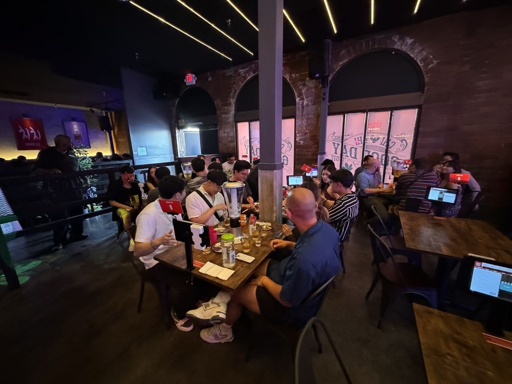 Start your evening with uniquely flavored yogurt soju or customize your own soju-beer combinations using specially marked cups. The interactive tablet at each table offers not only a quick way to order but also fun games to engage with friends and other patrons, enhancing the overall experience.